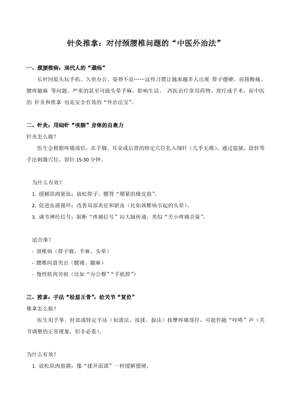 针灸推拿:对付颈腰椎问题的“中医外治法”