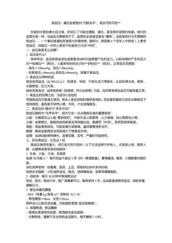 高血压:藏在血管里的“沉默杀手”