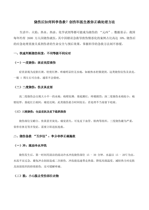 烧伤后如何科学急救?创伤科医生教你正确处理方法