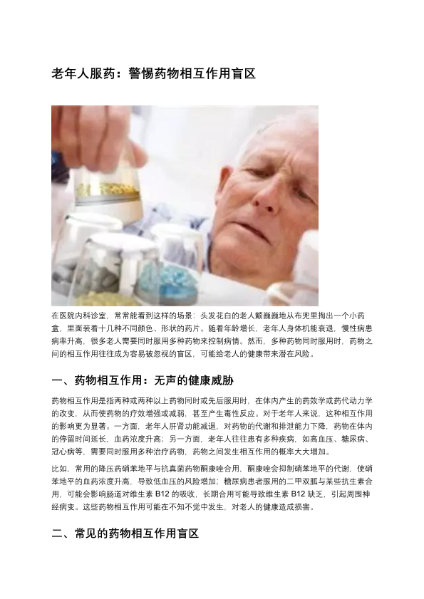 老年人服药:警惕药物相互作用盲区