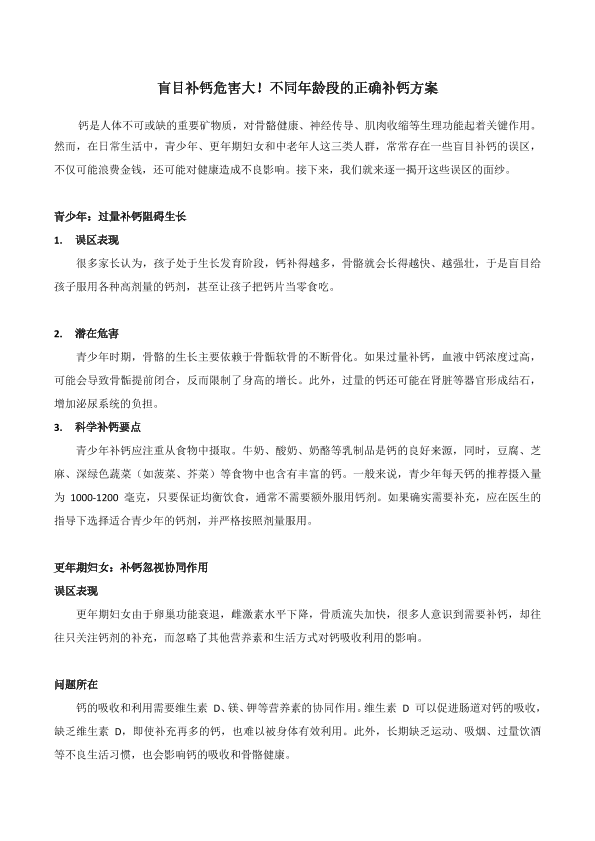 盲目补钙危害大!不同年龄段的正确补钙方案