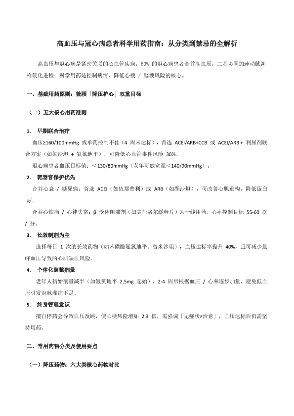 高血压与冠心病患者科学用药指南:从分类到禁忌的全解析