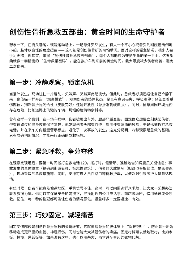 创伤性骨折急救五步曲:黄金时间的生命守护者