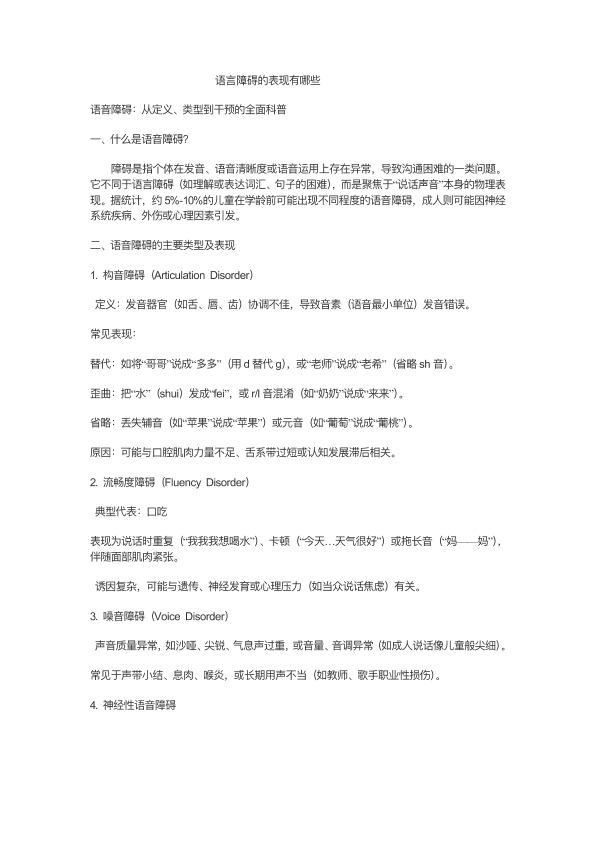 语言障碍的表现有哪些?
