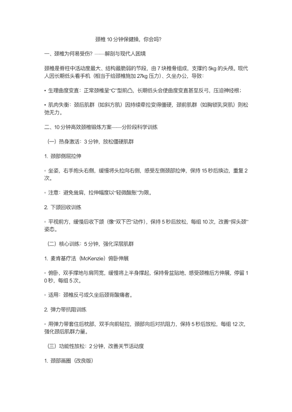 颈椎病10分钟保健操你会吗?