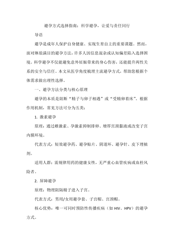 避孕方式选择指南:科学避孕,让爱与责任同行+白凤楼