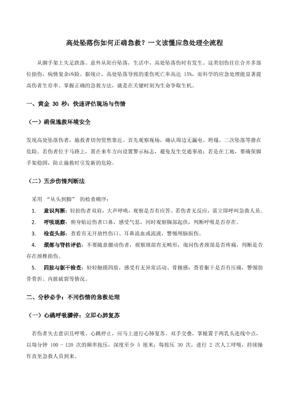 高处坠落上如何正确的急救?一文读懂应急处理全流程