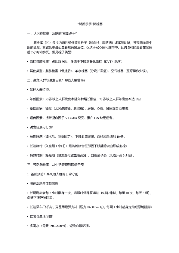 肺部杀手肺栓塞