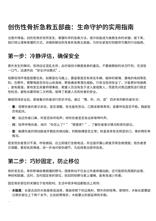 创伤性骨折五部曲:生命守护实用指南