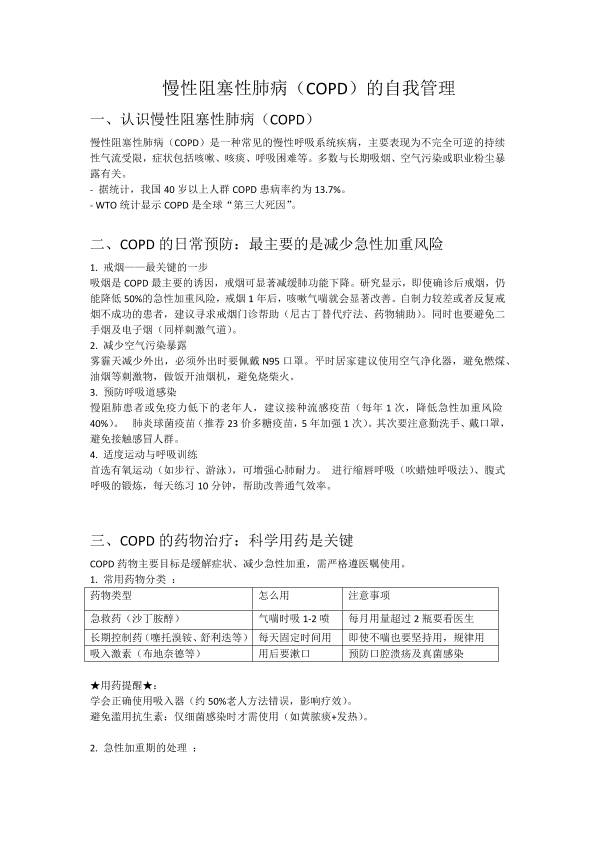 慢性阻塞性肺病的自我管理