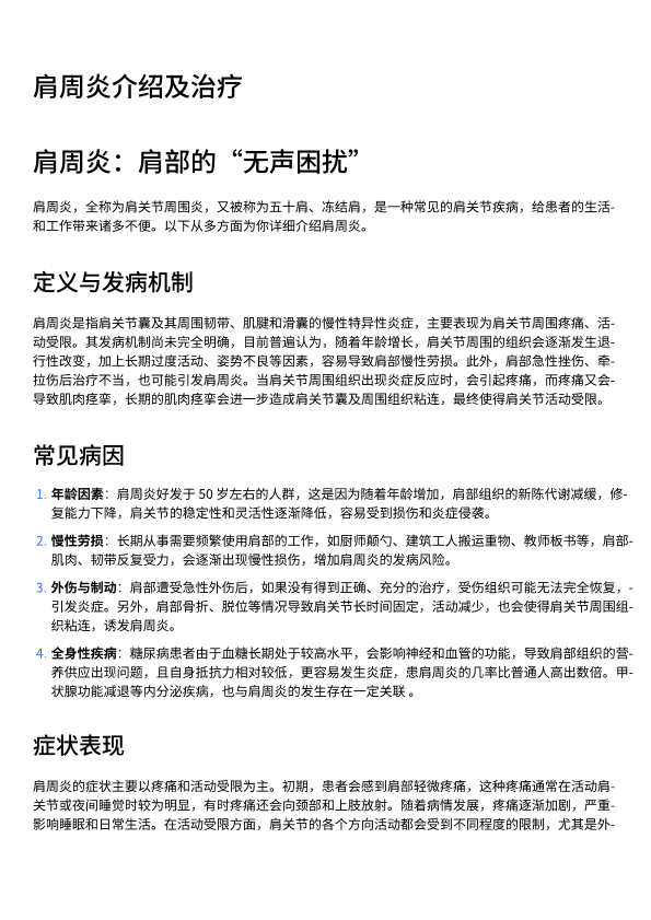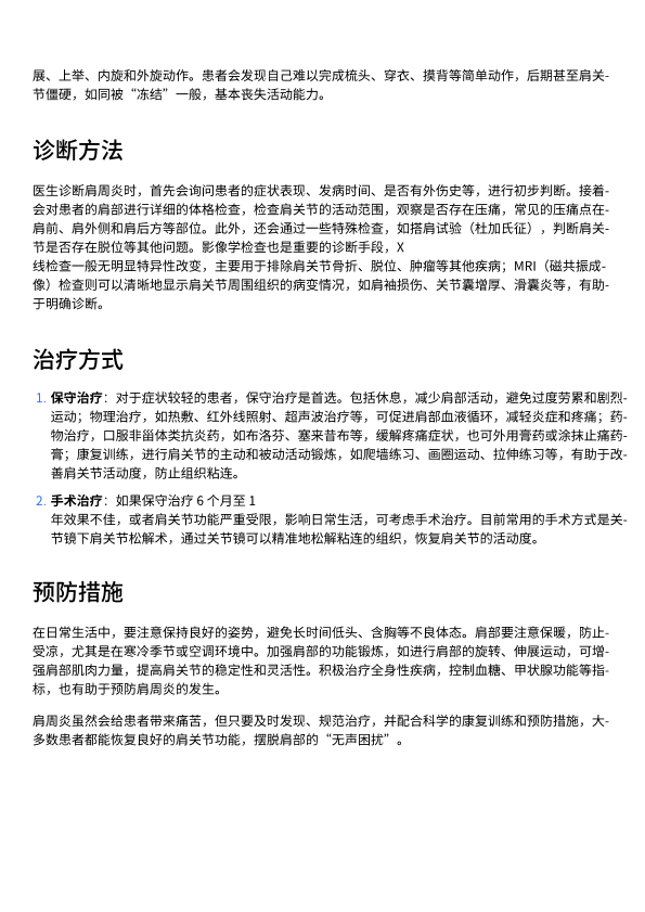 肩周炎介绍及治疗