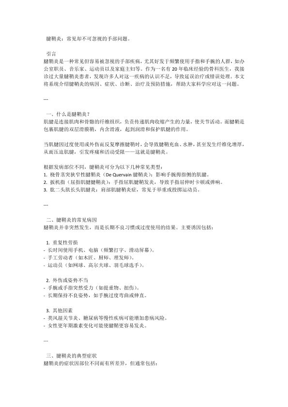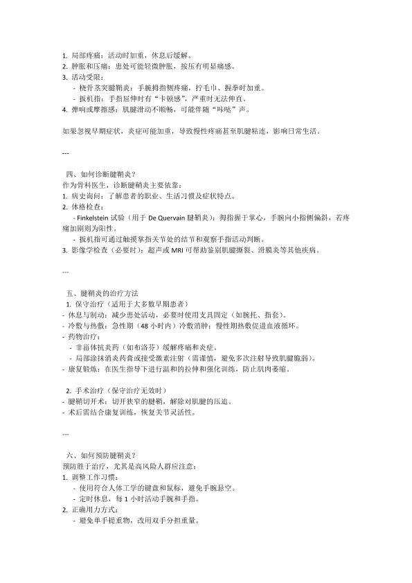 腱鞘炎的预防