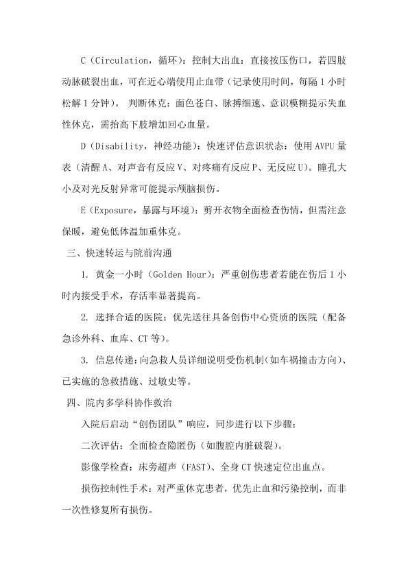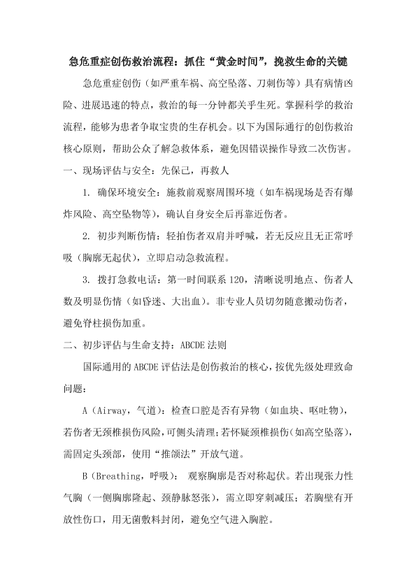 急危重症创伤救治流程:抓住“黄金时间” ,挽救生命的关键+张静