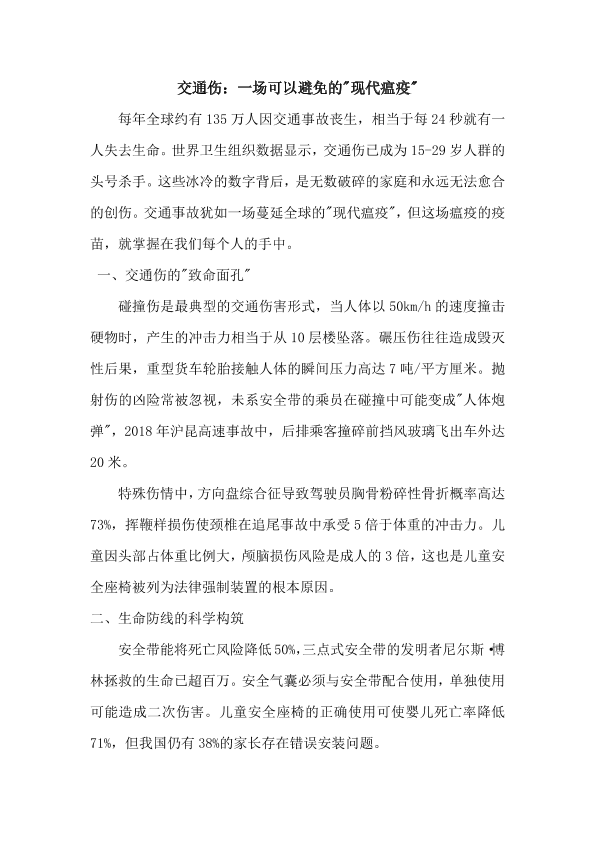 交通伤:一场可以避免的现代瘟疫+张静
