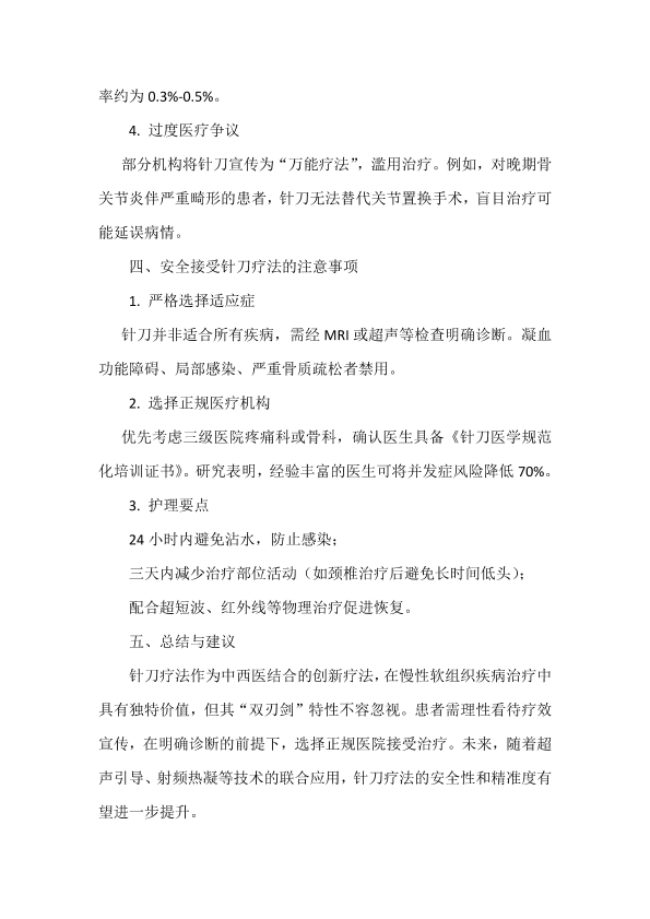 文字类作品+针刀疗法的利与弊:科学解析这一特色疗法+刘英杰