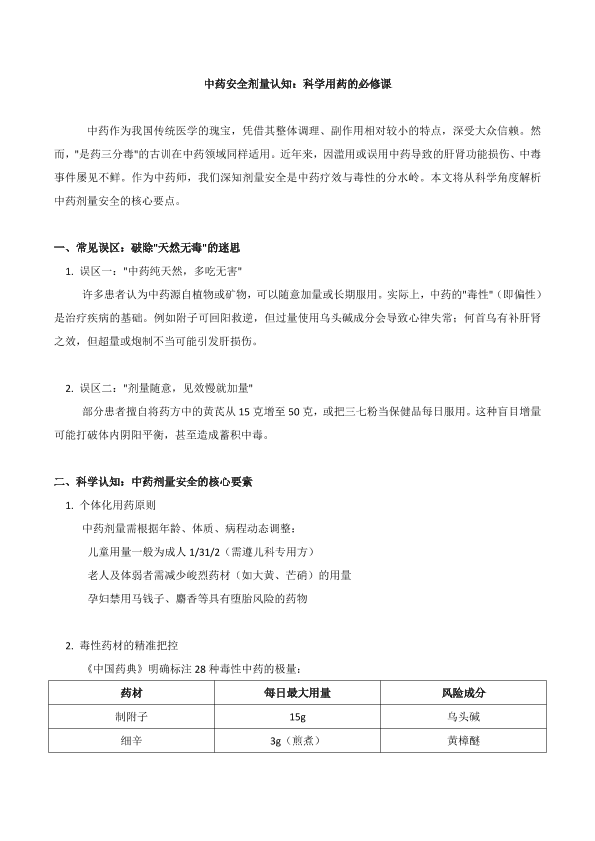 中央安全计量认知:科学用药的必修课