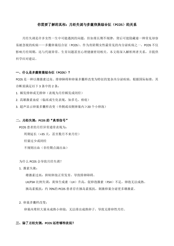 你需要了解的真相:月经失调与多囊卵巢综合症(PCOS)的关系