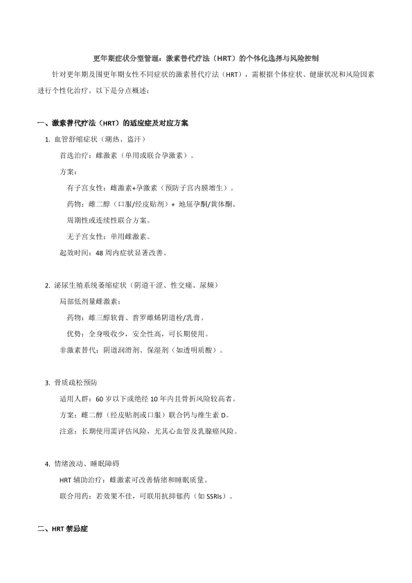 更年期症状分型管理:激素替代疗法(HRT)的个体化选择与风险控制