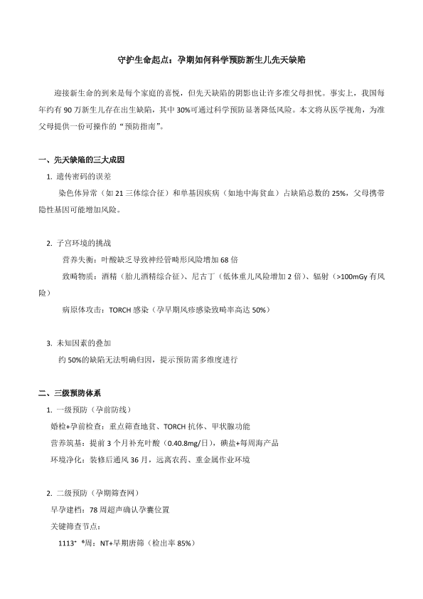 守护生命起点:孕期如何科学预防新生儿先天缺陷
