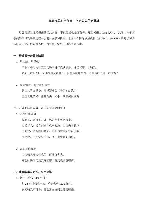 母乳喂养科学指南:产后妈妈的必修课