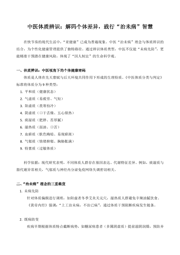 中医体质辨识:解码个体差异,践行“治病”智慧