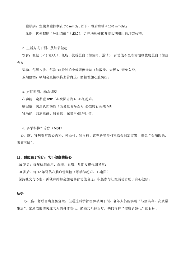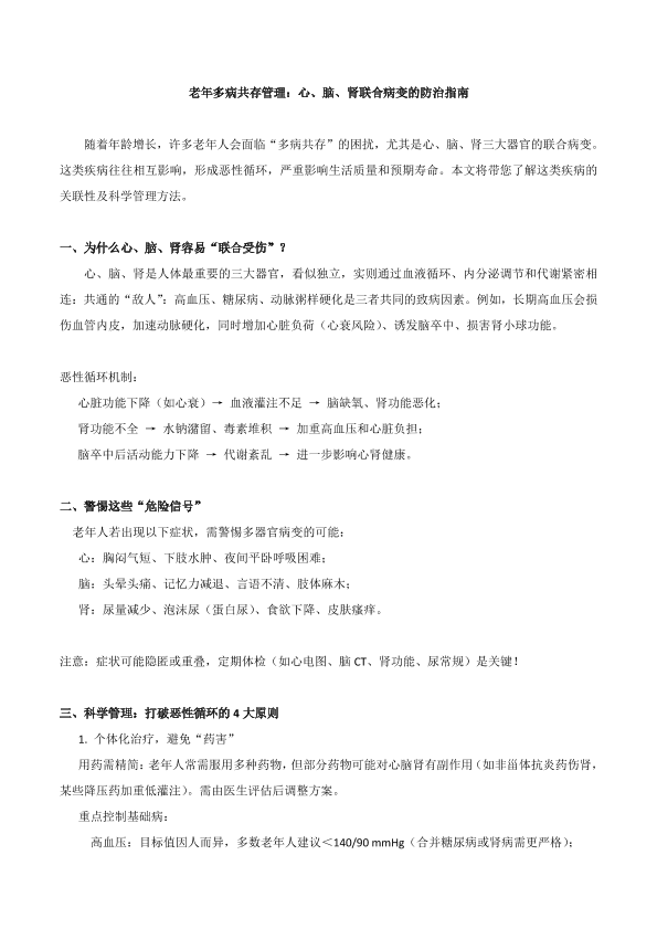 老年病共存管理:心、脑、肾联合病变的防治指南