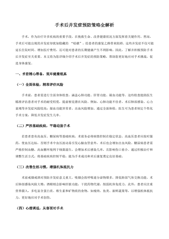 手术后并发症预防策略全解析