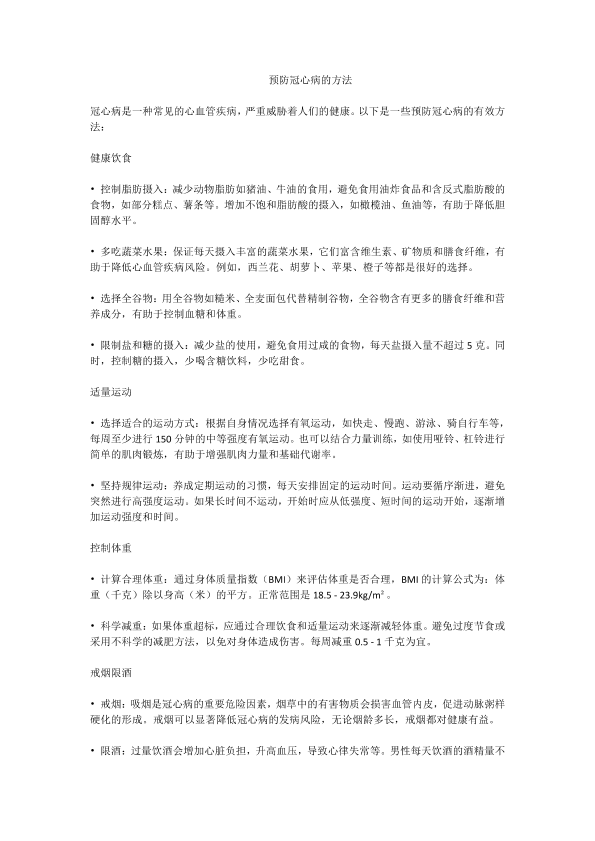 预防冠心病的方法