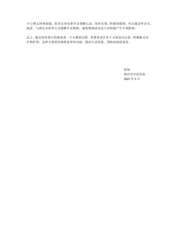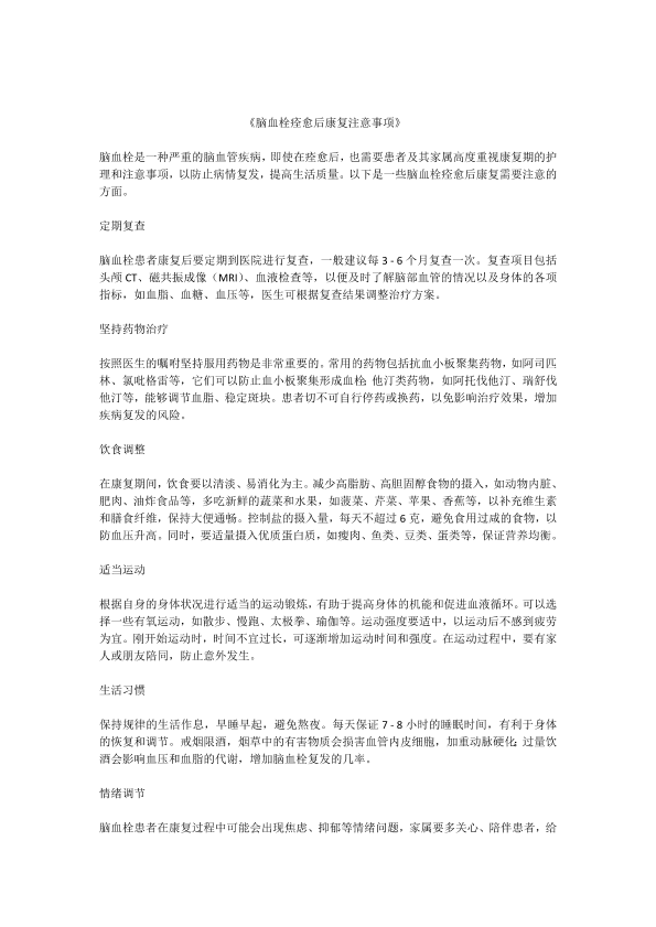 脑血栓痊愈后康复注意事项