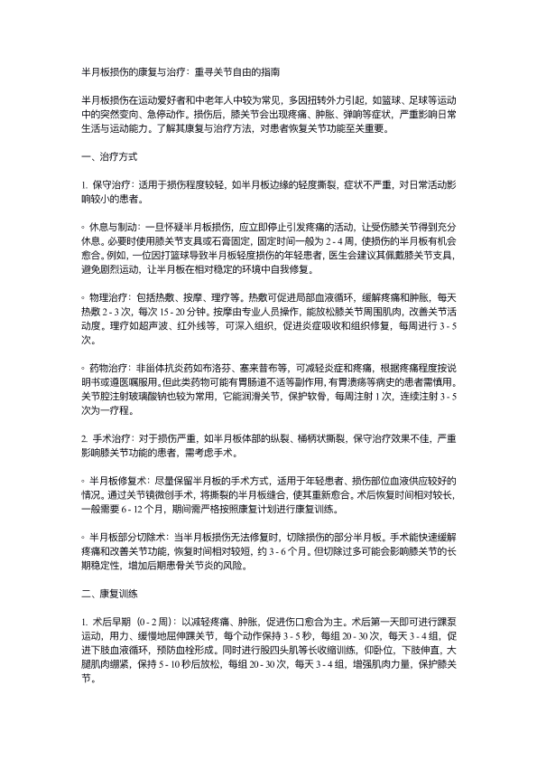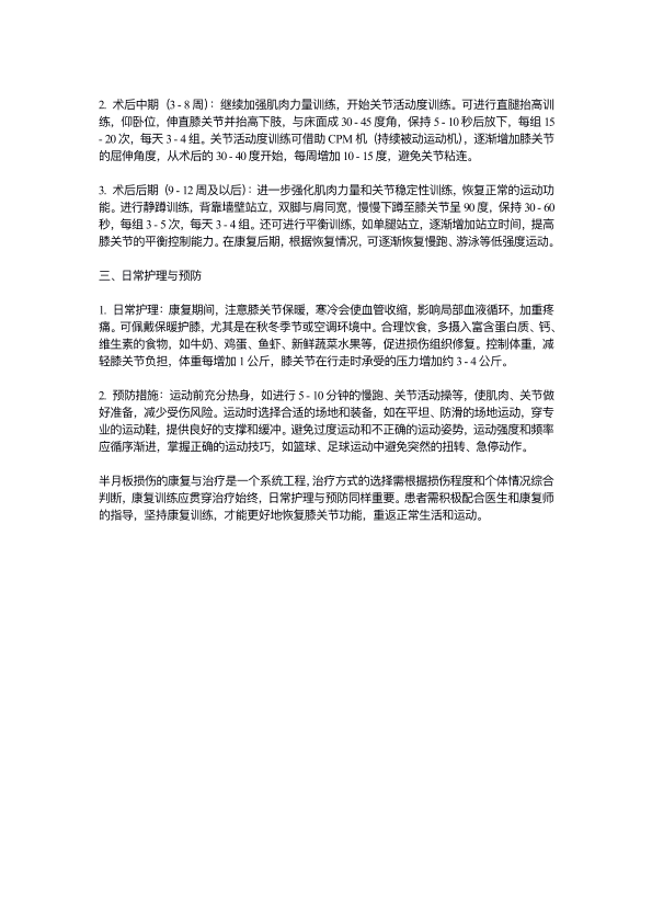 半月板损伤的康复与治疗