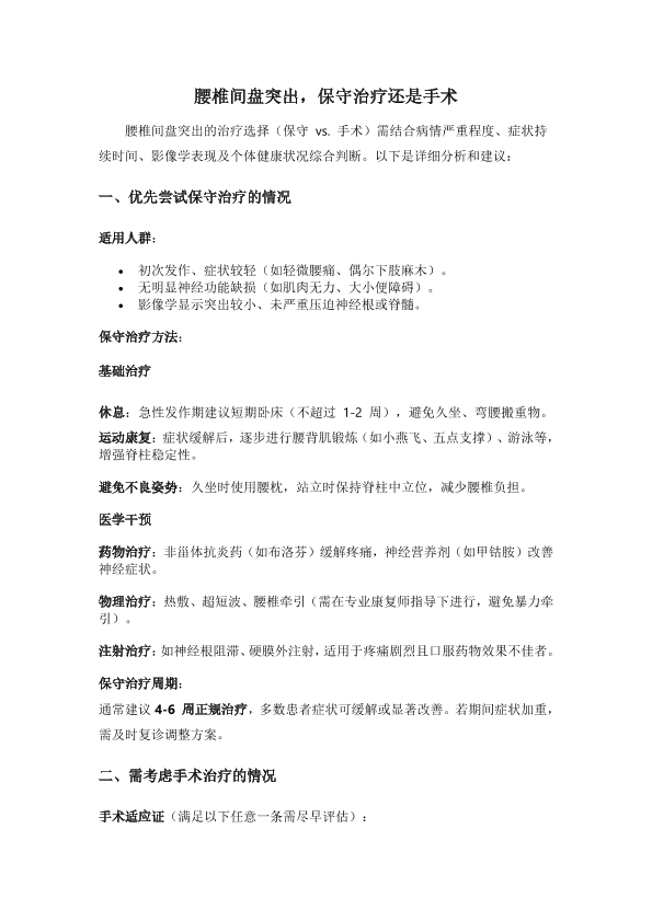 腰椎间盘突出,保守治疗还是手术