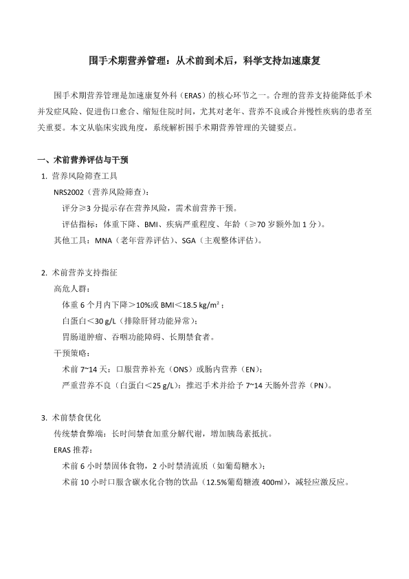 围手术期营养管理:从术前到术后,科学支持加速康复