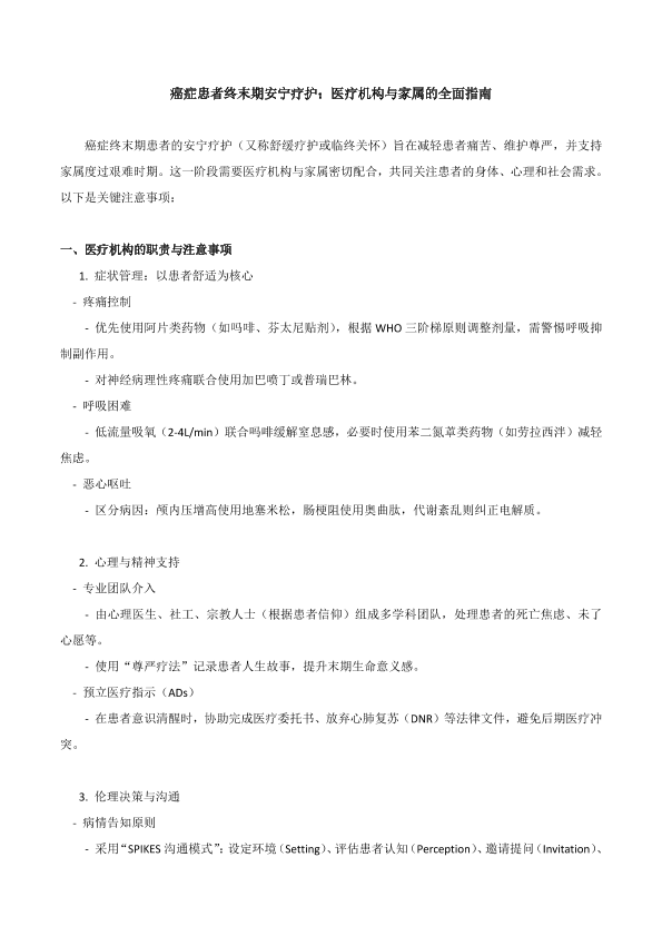 癌症患者周末及安宁疗护