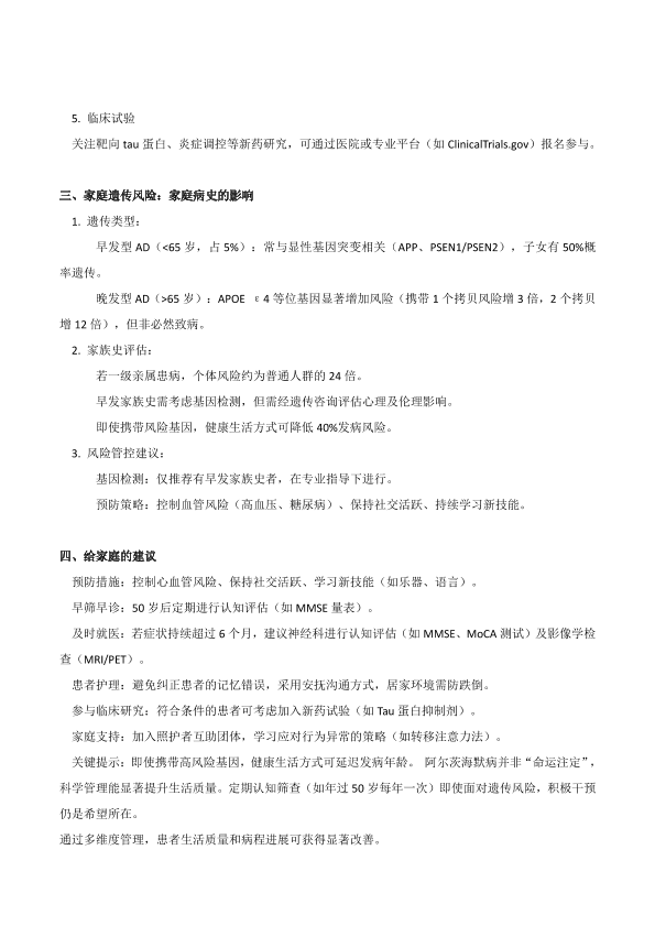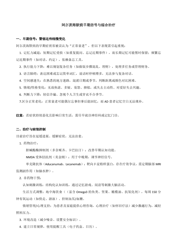阿尔茨海默病早期性状与综合治疗