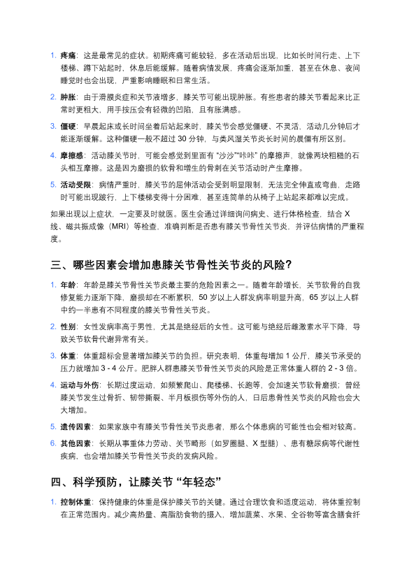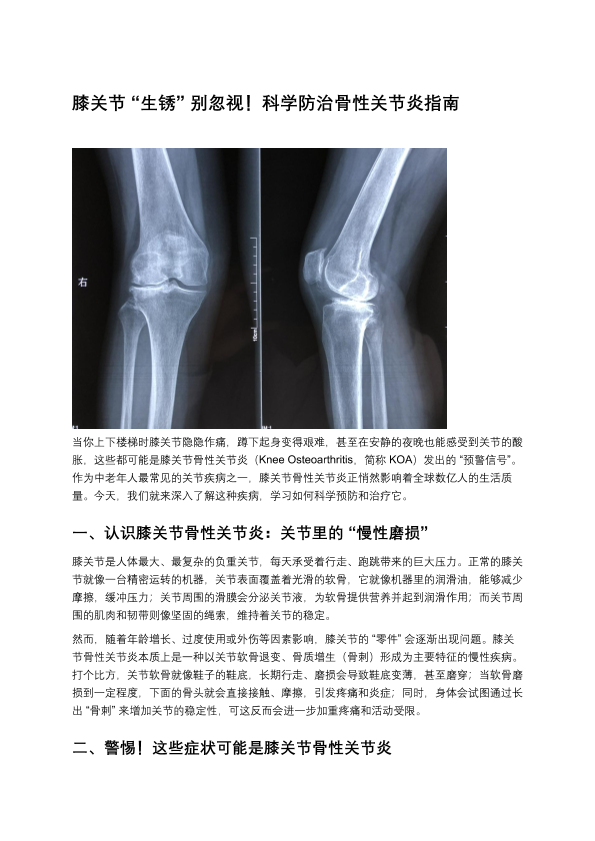 膝关节“生锈”别忽视!科学防治骨性关节炎指南