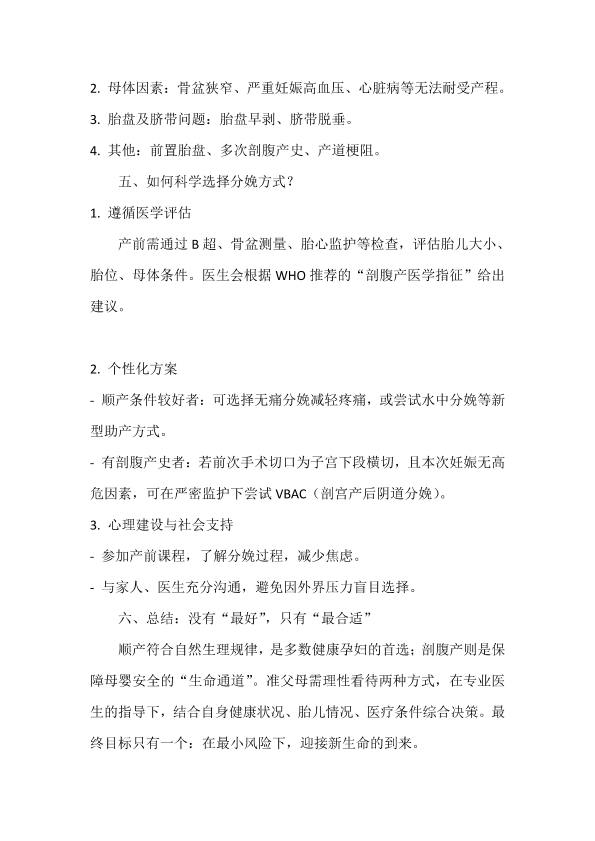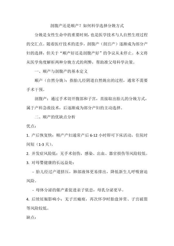 文字类作品:剖腹产还是顺产?如何科学选择分娩方式