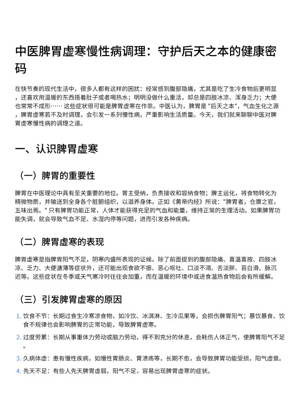 中医脾胃虚寒慢性病调理:守护后天之本的健康密码
