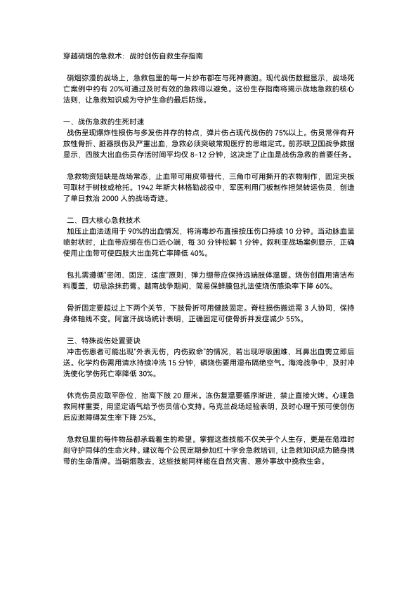 战时创伤急救科普