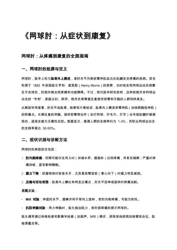 网球肘:从症状到康复