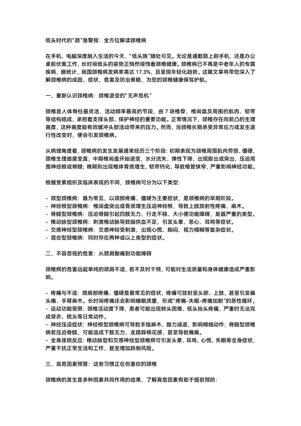 颈椎病:低头族的“隐形杀手”,如何自救?