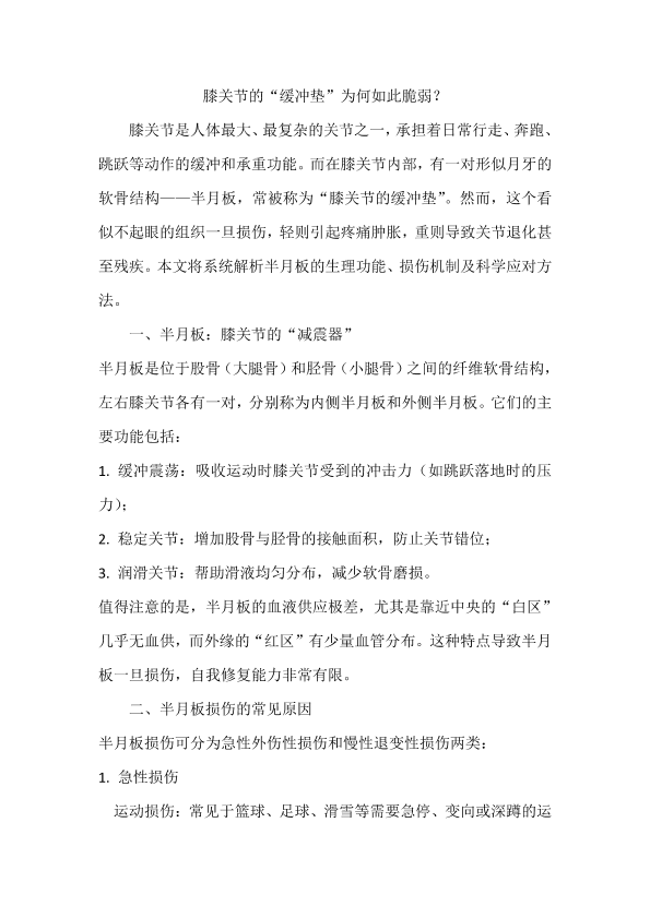 膝关节的缓冲垫为何如此脆弱