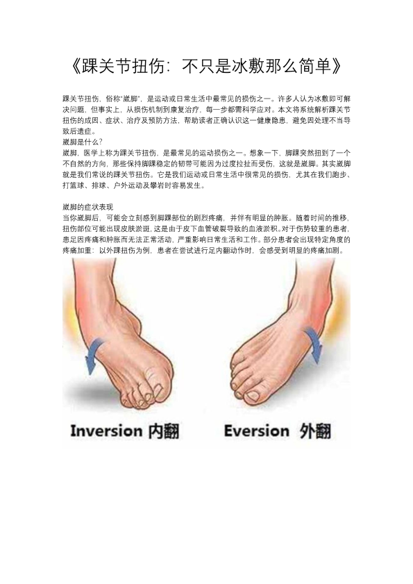 踝关节扭伤:不仅仅是冰敷