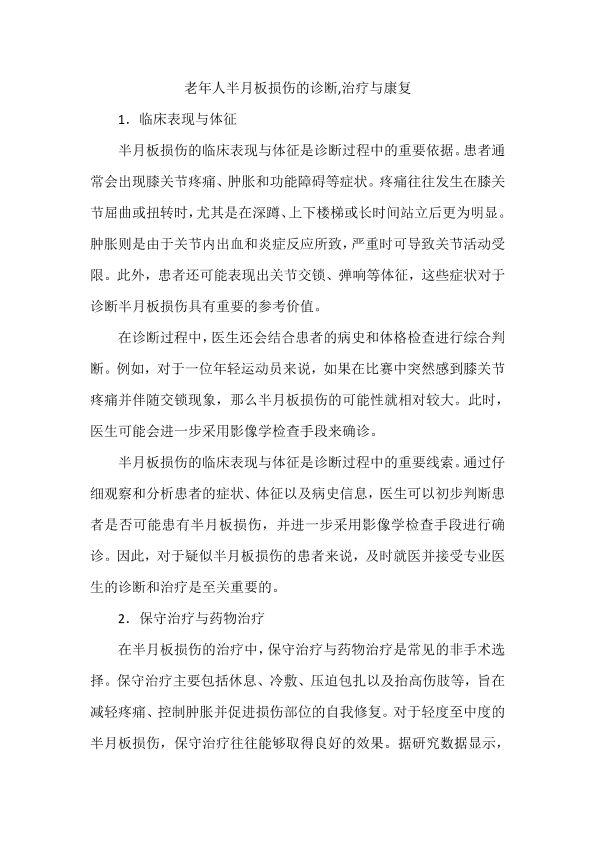 文字类作品+老年人半月板损伤的诊断治疗与康复+米世腾