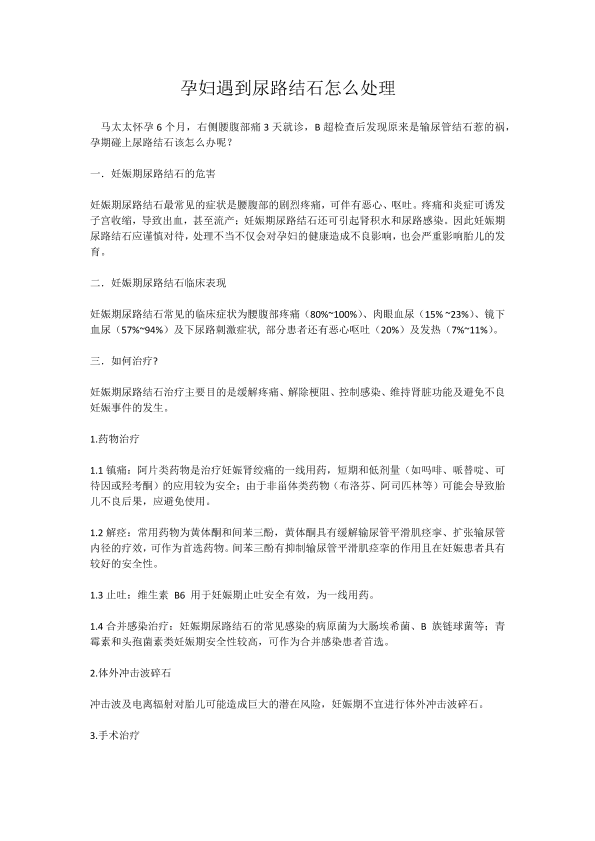 孕妇遇到尿路结石怎么处理