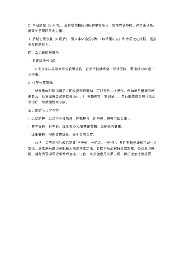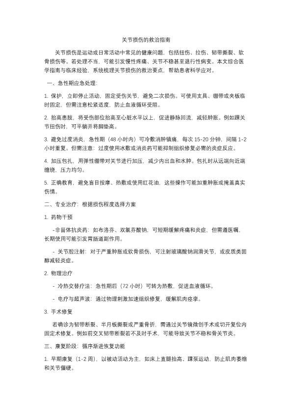 关节损伤的救治原则