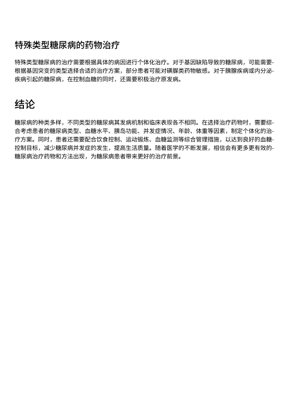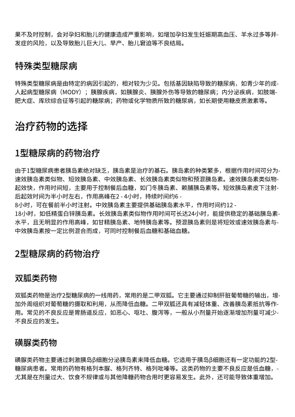 糖尿病的种类及治疗药物的选择