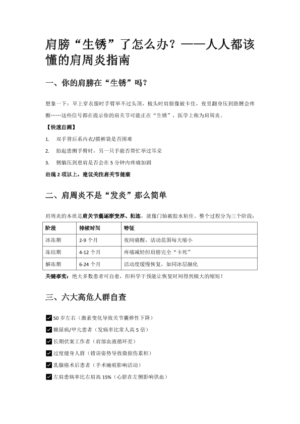 肩膀“生锈”了怎么办?——人人都该懂的肩周炎指南