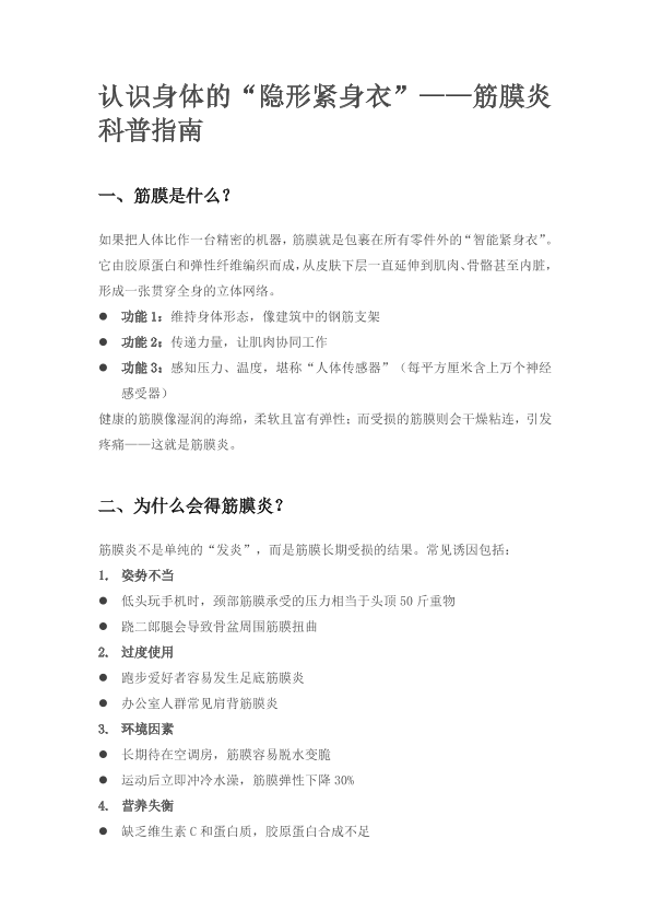 认识身体的“隐形紧身衣”——筋膜炎科普指南