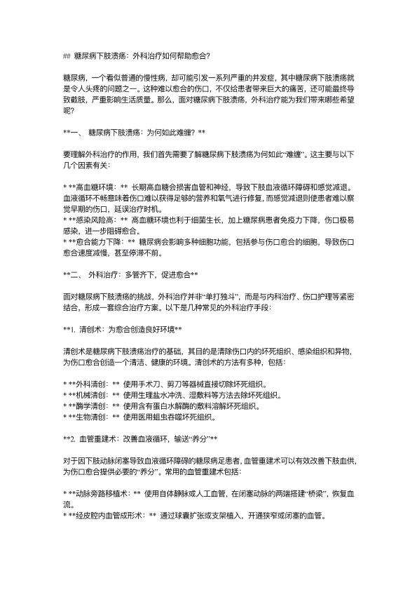 糖尿病下肢溃疡:外科治疗如何帮助愈合?