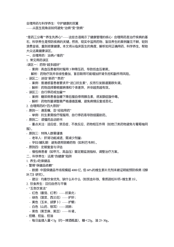 合理用药与科学养生